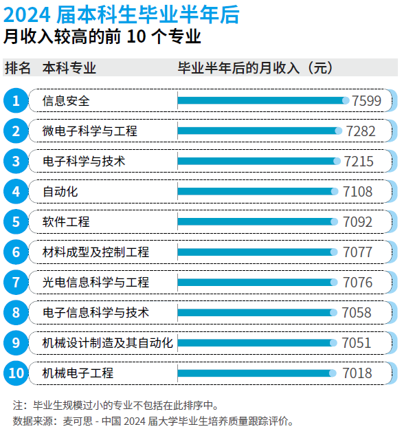 这些“绿牌”专业正在就业市场表示抢眼,不只薪资程度位居前列,更以高专业婚配度和就业对劲度著称。数据显示,2024届微电子科学取工程专业结业生平均月收入达7282元,高居本科专业收入榜第二位;电气工程及其从动化专业的就业相关度和对劲度别离达到86%和85%。